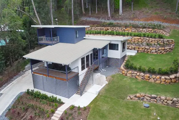 Generally only minor excavation is required underneath a section of the house. There is an area for a double carport or garage plus an additional area that can be enclosed. This area can be built in during the initial construction or enclosed later to include more bedrooms,